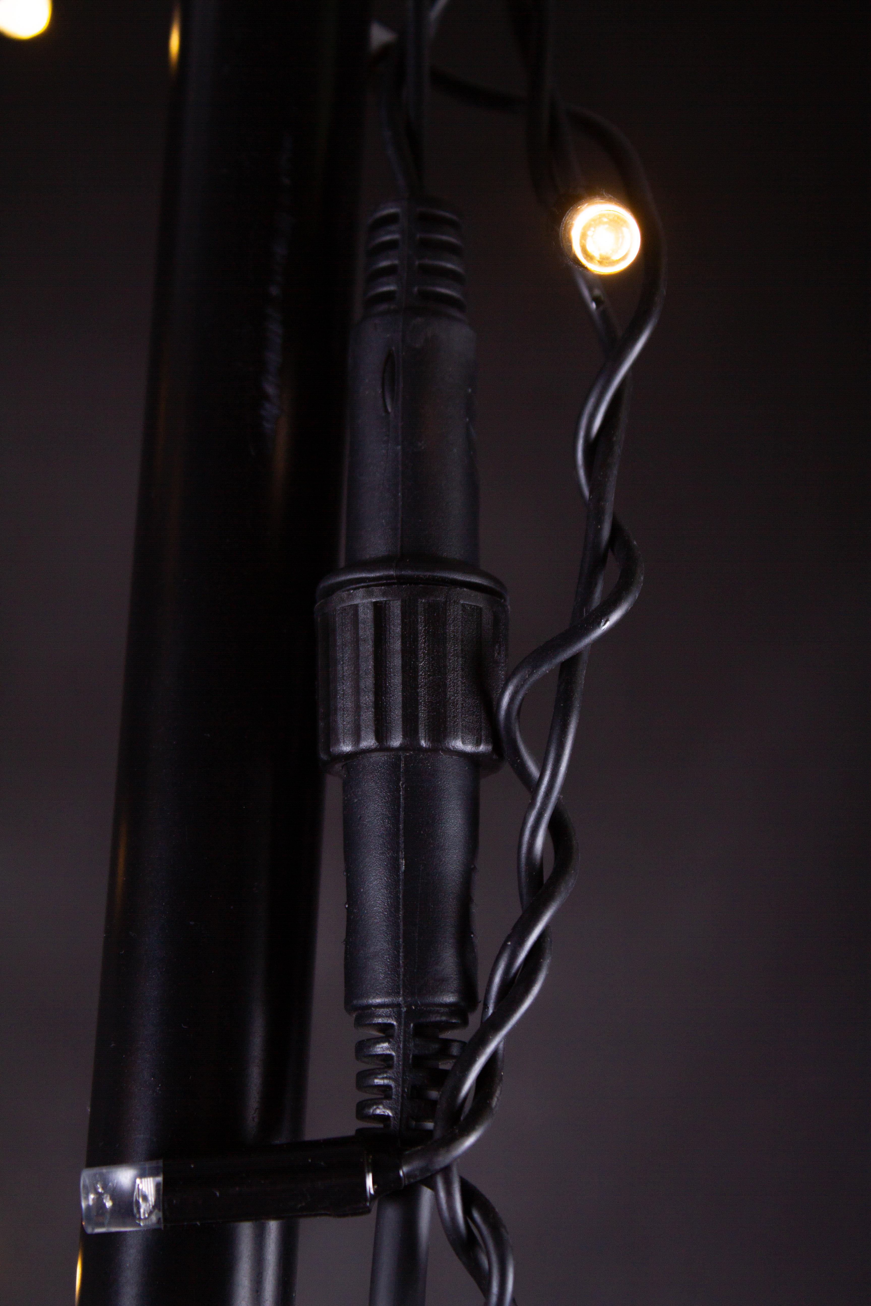 Ширина: 12 м. (стыкуются до 36м между собой). Мерцает каждый 10 Led,(flah-эффект) Длина нитей: 20 см, 40 см и 60 см. Количество ламп на 3м: 100 LED Расстояние между отростками: 12 см. Тип провода: черный, белый каучук и прозрачный силикон. Цвет на выбор: теплый-белый, холодный - белый, синий, красный, розовый и разноцветный. Соединяемая гирлянда (с коннектором). Степень влагозащиты: IP65, подходит для использования в помещении и на улице. Работает от сети 220V. Силовой провод: 1.5 м в комплекте.