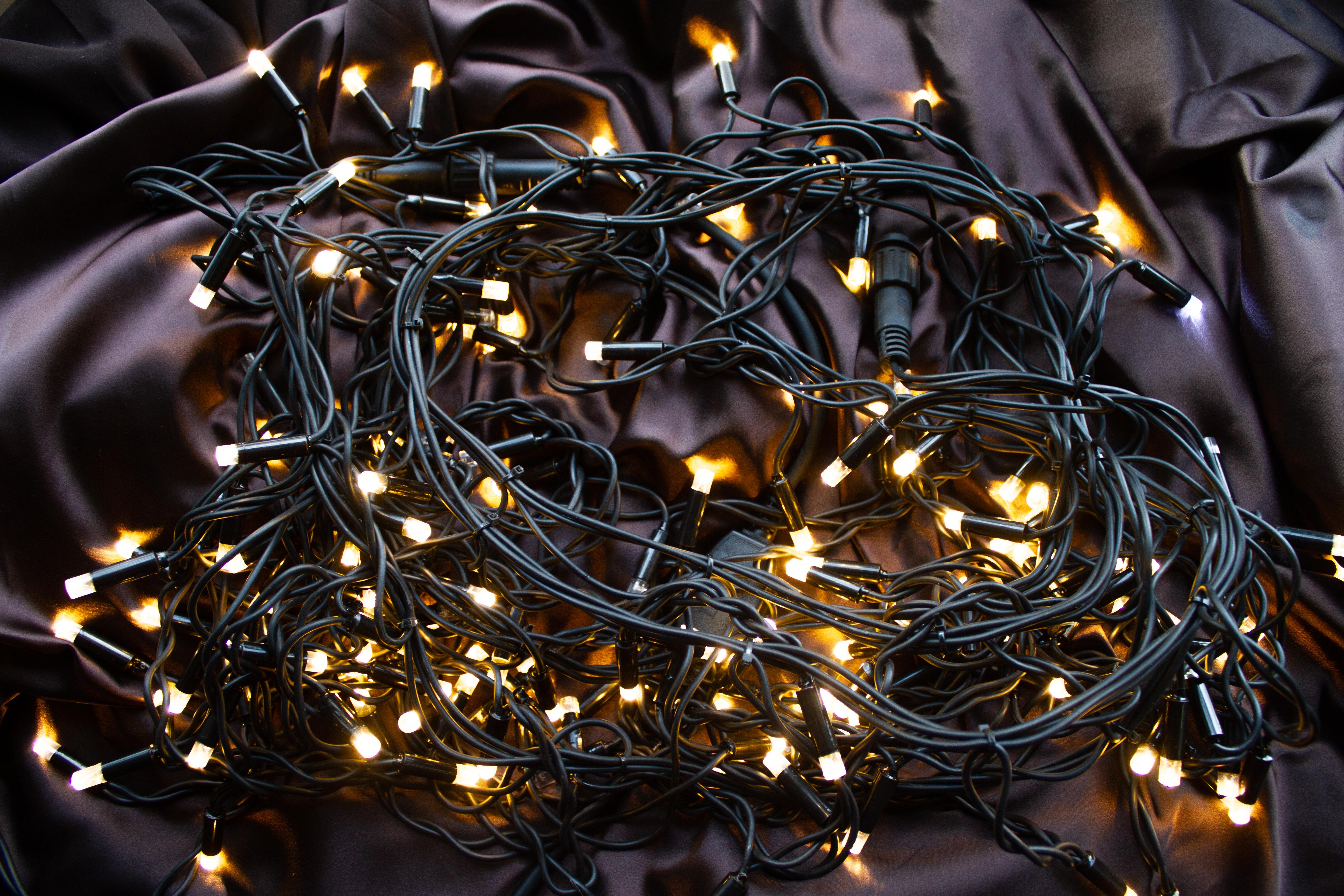 Длинна: 10м. (стыкуются до 50м между собой) Количество ламп : 100 LED Расстояние между отростками: 12 см. Тип провода: черный и белый каучук. Цвет на выбор: теплый-белый, холодный - белый, синий, разноцветный. Соединяемая гирлянда (с коннектором). Степень влагозащиты: IP65, подходит для использования в помещении и на улице. Работает от сети 220V. Силовой провод: 1.5 м в комплекте.