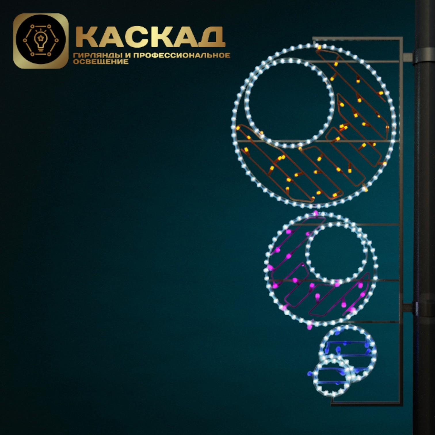 Панель-кронштейн "Круги": Высота: 149 см Ширина: 65 см Влагозащищенность: IP65 Каркас: Металлический Материал: Дюралайт, Нить Напряжение: 220 В Потребляемая мощность: 29 Вт Цвета: Жёлтый Белый -синий Красный - теплый белый Розовый - желтый Желтый - розовый - синий