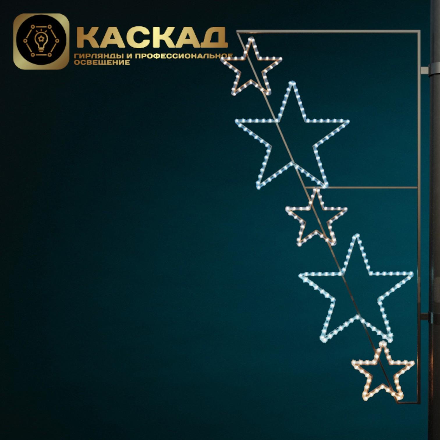 Панель-кронштейн "Каскад звезд": Высота: 170 см Ширина: 90 см Влагозащищенность: IP65 Каркас: Металлический Материал: Дюралайт Напряжение: 220 В Потребляемая мощность: 21 Вт Цвета: Белый -синий Желтый - красный Теплый белый - белый Желтый - теплый белый