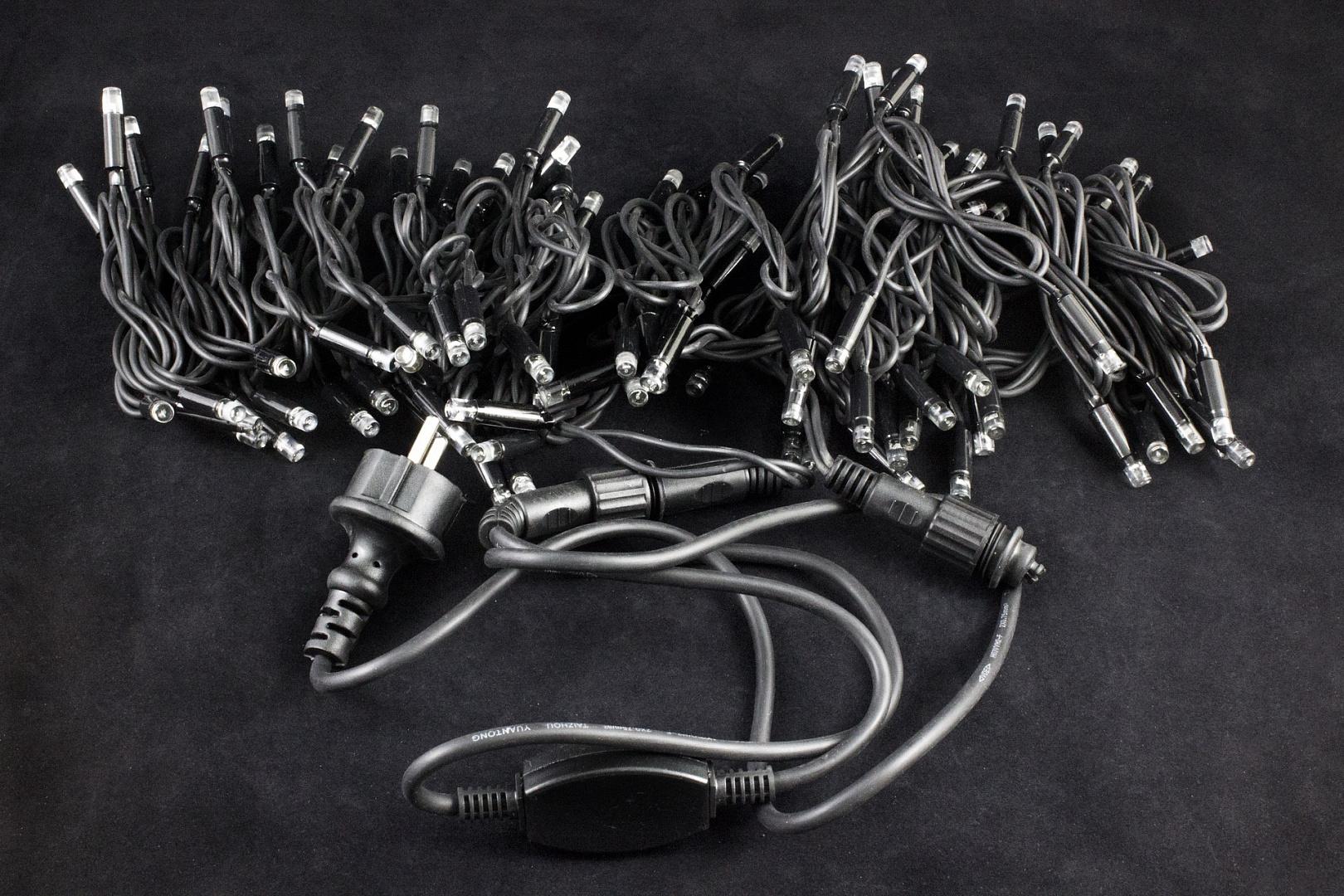 Длинна: 10м. (стыкуются до 60м между собой) Количество ламп : 100 LED Тип провода: черный или белый каучук. Соединяемая гирлянда (с коннектором). Степень влагозащиты: IP65, подходит для использования в помещении и на улице. Работает от сети 220V. Силовой провод: 1.5 м в комплекте.