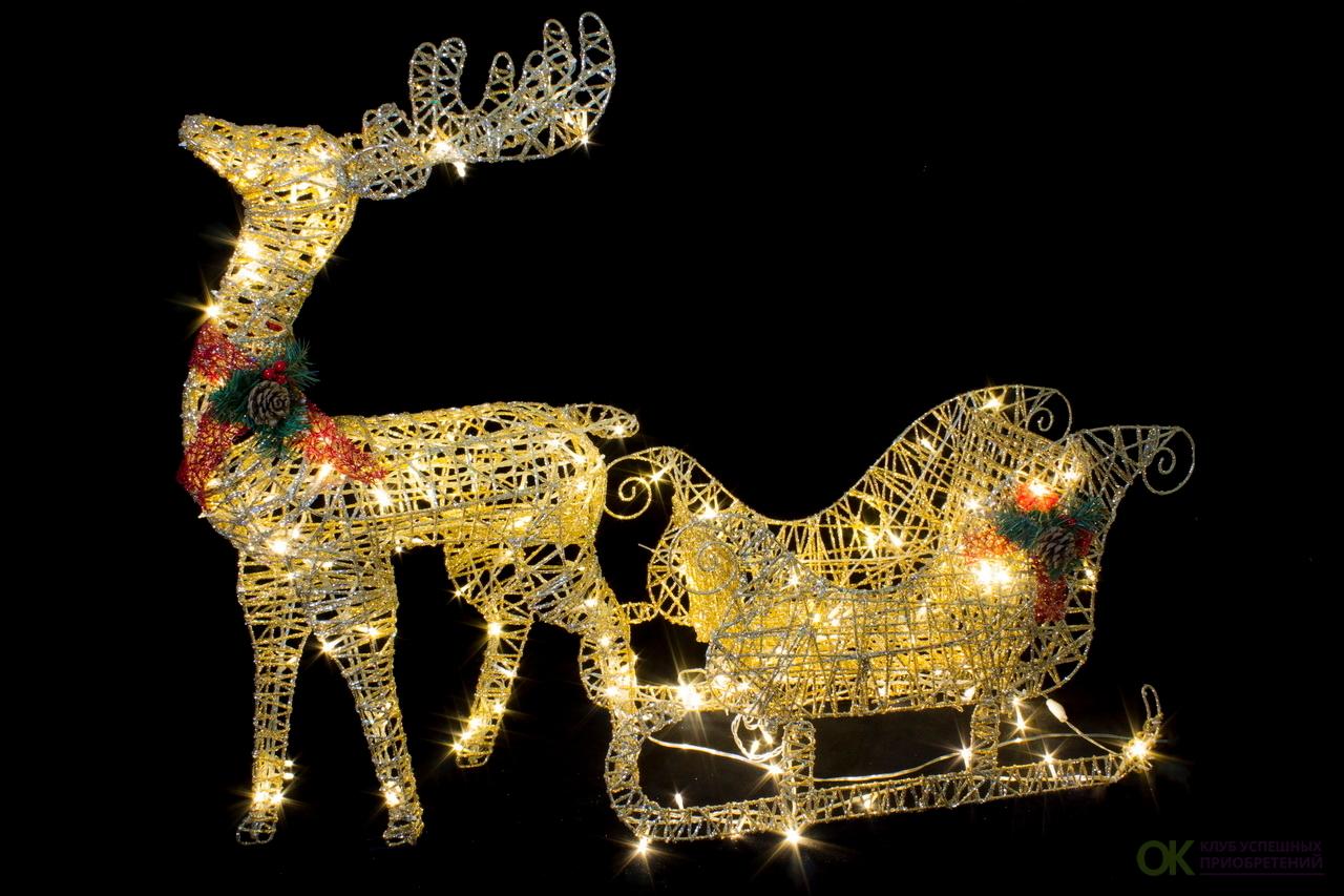 Олень светодиодный с санями