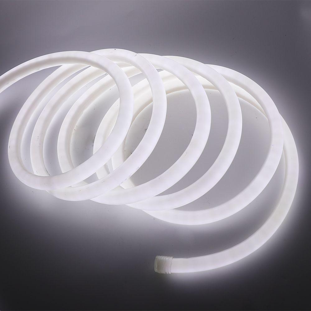 Гибкий неон - световой шнур выполненный из матовой белой ПВХ трубки с токопроводящими жилами и светодиодами внутри. Используется для декоративной и архитектурной подсветки объектов, так же широко распространён в украшении интерьера. Цвет: Теплый-белый, холодный-белый, синий, зеленый, красный