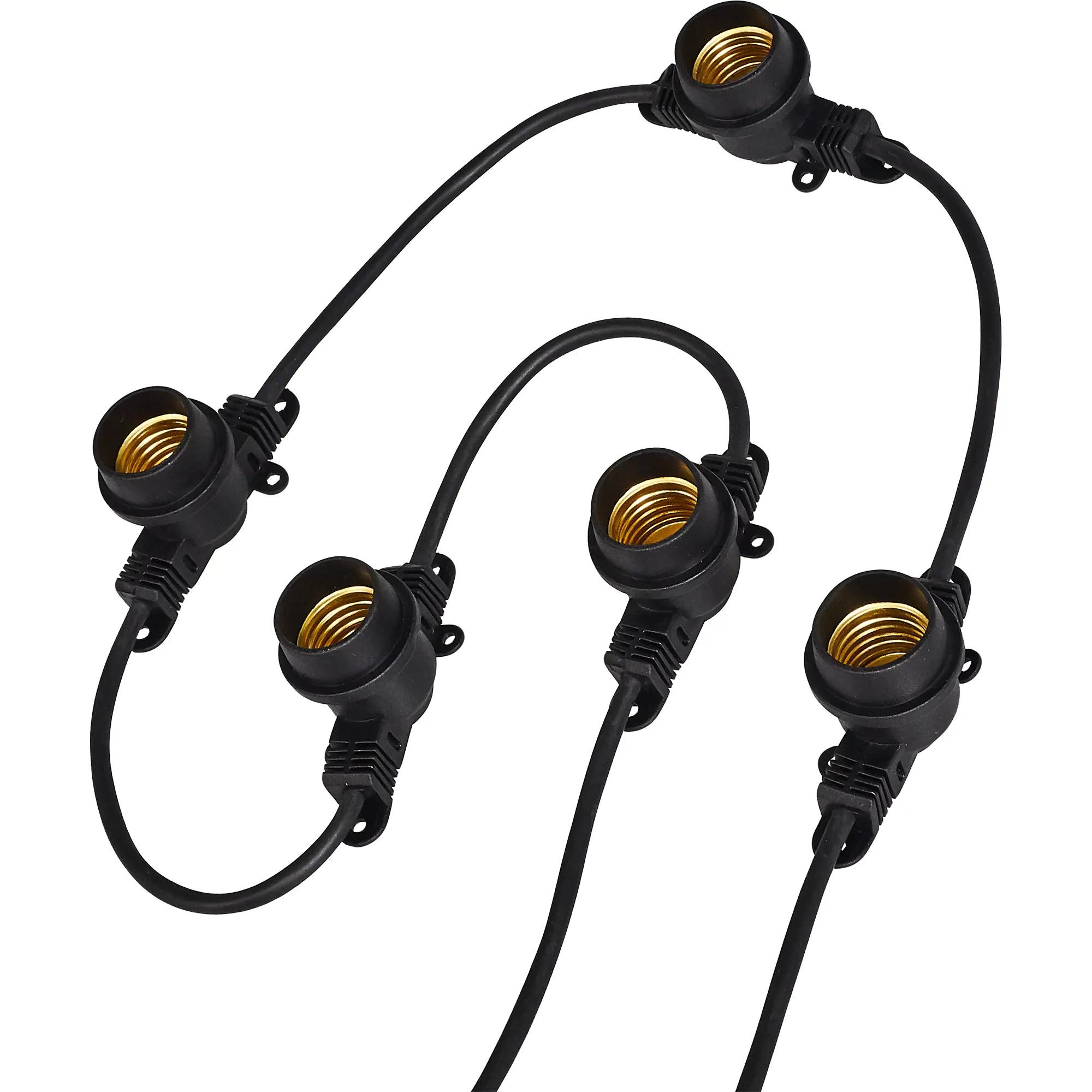 Уличная гирлянда BELT-LIGHT применяется для формирования декоративного освещения, праздничного оформления, акцентной подсветки с использованием ламп с цоколем Е27. Длина гирлянды - 5 метров, 10 патронов с цоколем Е27. Расстояние между патроновами 50 см., максимальная мощность нагрузки - 3680 Вт, максимальный ток - 16А. Сечение 2×1,5мм. Параллельная схема соединения ламп - при перегорании одной из ламп питание остальных ламп не прерывается. Внимание! Гирлянда BELT-LIGHT не является самонесущей. Для установки необходимо использовать несущий трос. Лампы в комплект не входят.