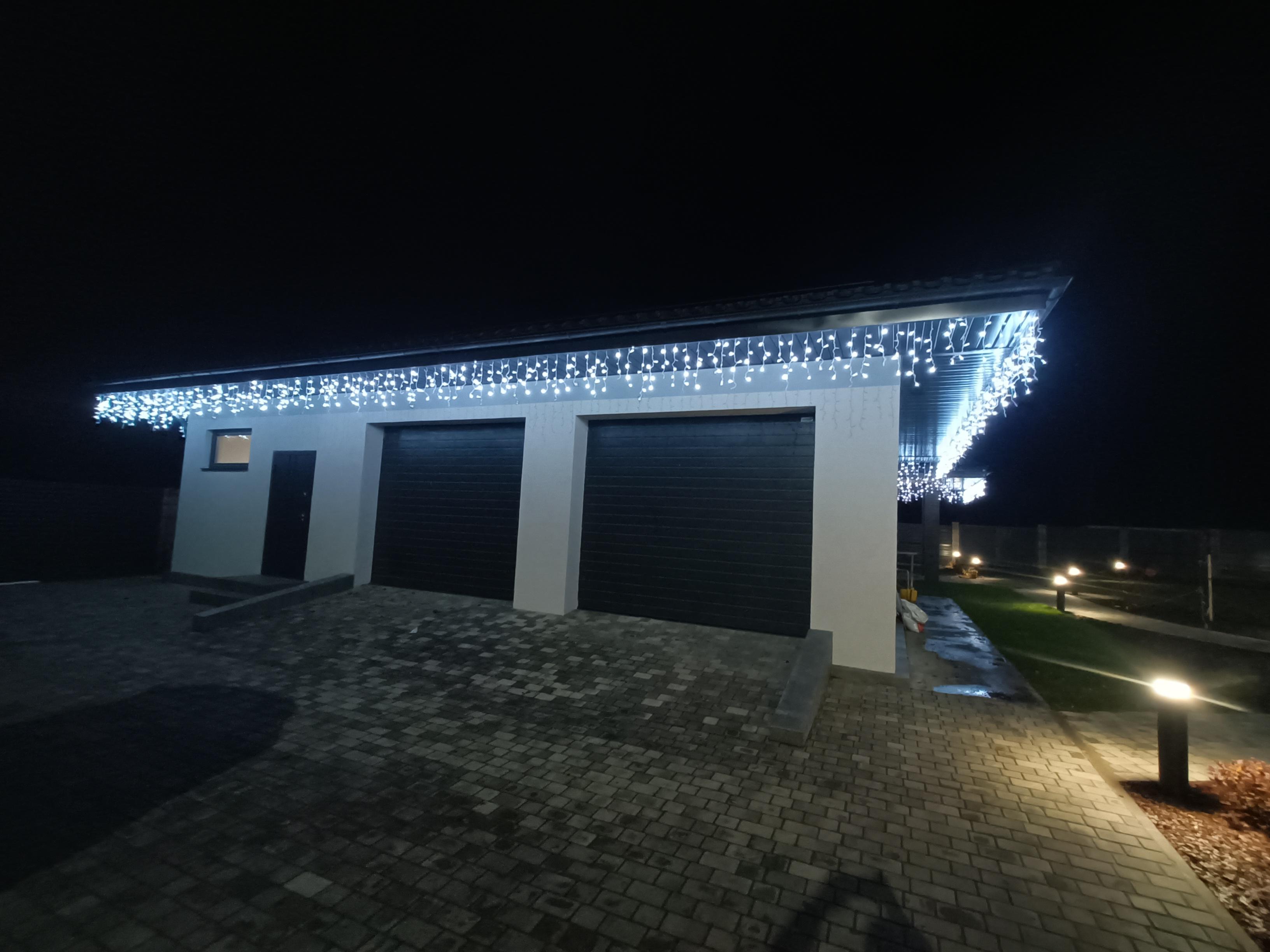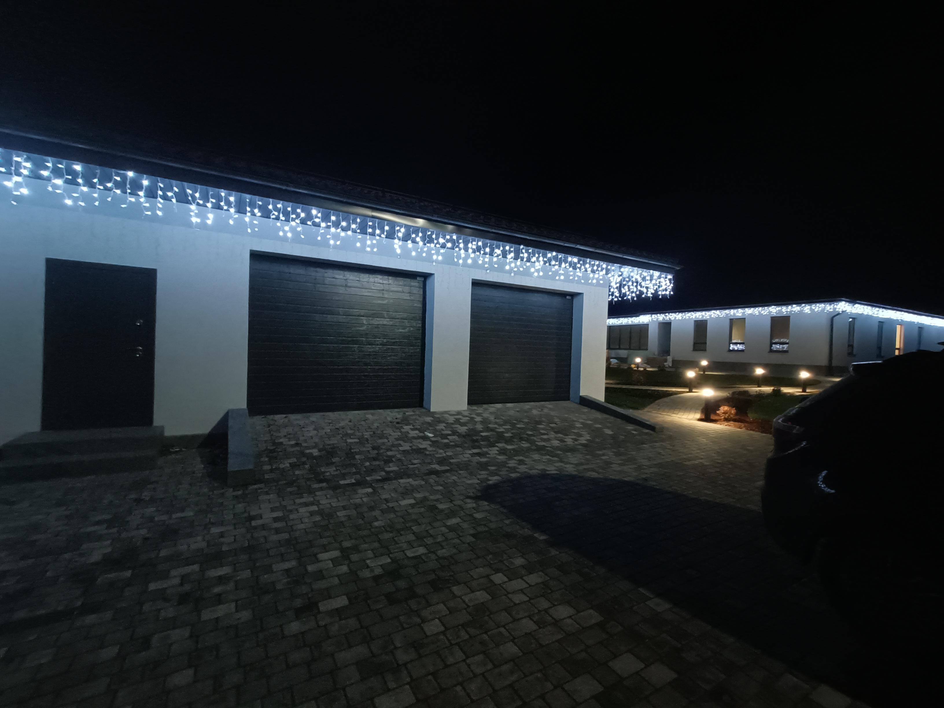 Ширина: 3 м. (стыкуются до 30м между собой). Белый холодный цвет, белый каучук d-3мм. Мерцает каждый 10 Led,(flah-эффект) Длина нитей: 20 см, 40 см и 60 см. Количество ламп на 3м: 100 LED Расстояние между нитями: 12 см. Степень влагозащиты: IP65, подходит для использования в помещении и на улице. Работает от сети 220V. Блок питания: 1.5 м в комплекте.